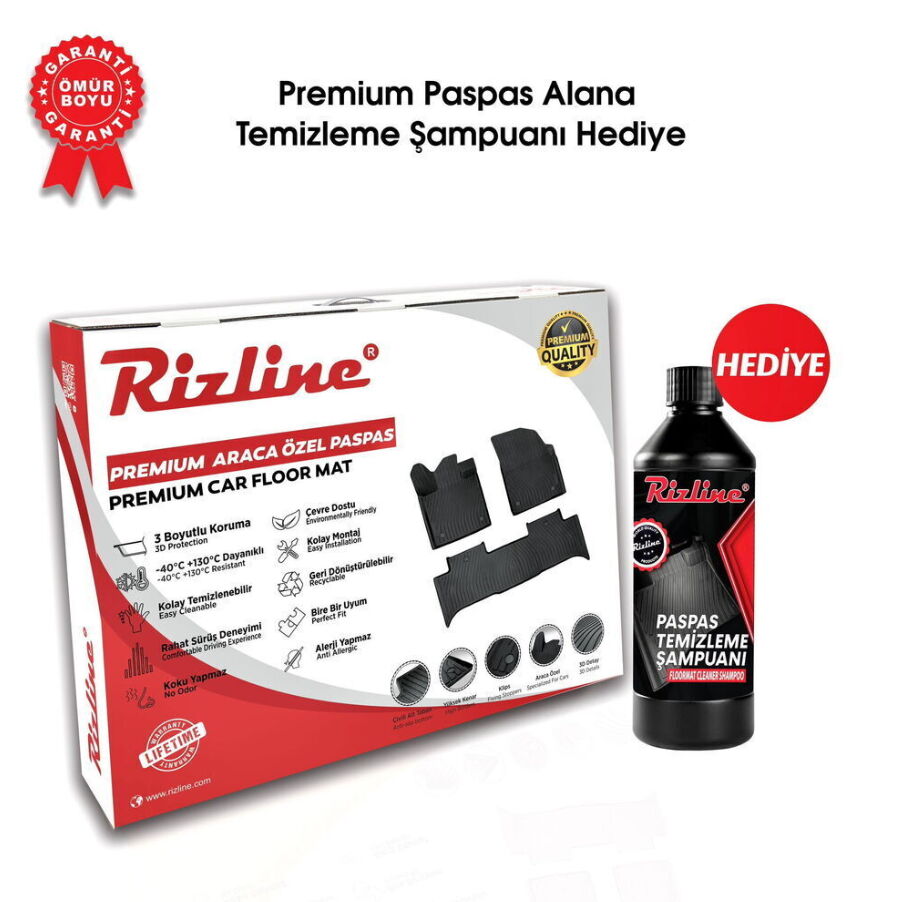 Rizline Premium Oto Paspasları her türlü hava koşullarına dayanıklıdır. İçerisinde kullanılmış olan hammadde en sıkı endüstriyel kalite standartlarında uygunluğu test edilmiş olup yüksek kaliteli, uzun ömürlü ve dayanıklı olduğu kanıtlanmıştır.